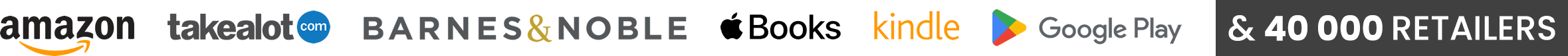 Sell through 40 000+ RetailersAmazon, Barnes & Noble, Takealot, Google, Apple, Kindle, Kobo and more..